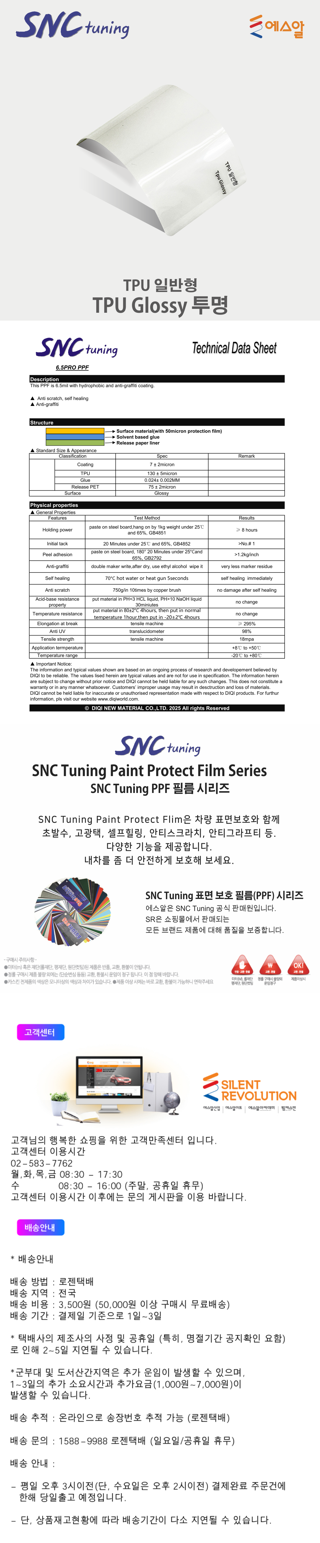 SNC Tuning PPF 롤판매 일반형 TPU Gloss 투명 PPF 130 micron/SNC Tuning