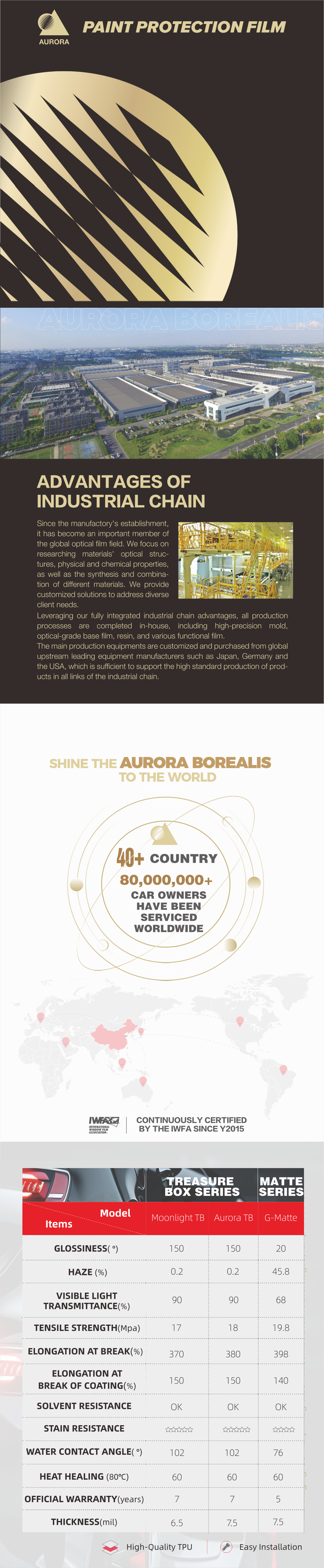오로라 PPF Film 시리즈는 우수한 품질과 시공 성능을 자랑합니다.