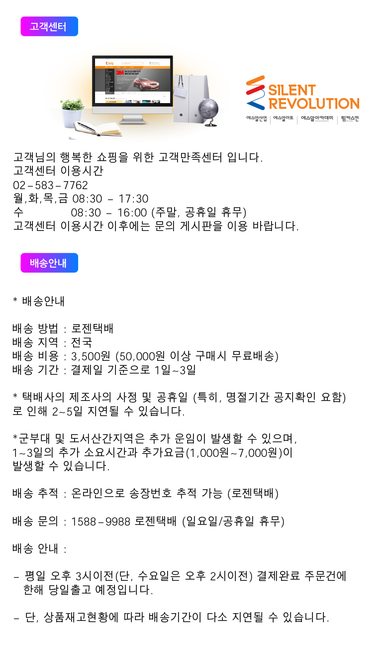 에스알의 모든 판매 상품은 부가세 포함 가격입니다. 모든 제품은 미국에서 수입되어 들어오는 제품으로 일시적인 품귀현상이 있을 수 있습니다. 택배. 화물배송, 퀵 등 배송방법에 따라 추가 금액이 발생할 수 있습니다.